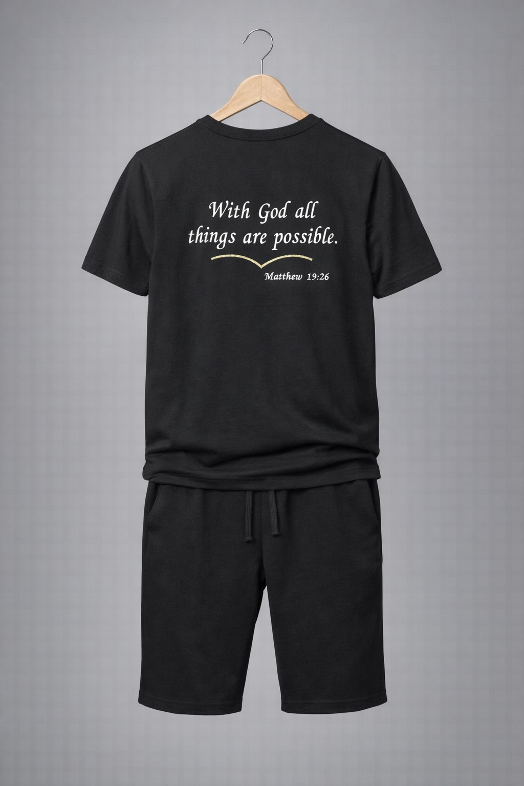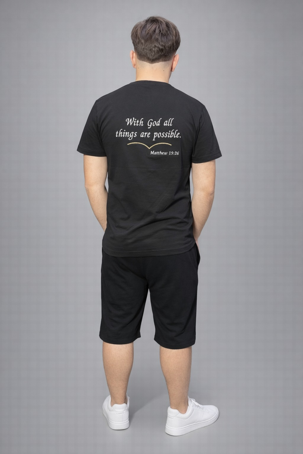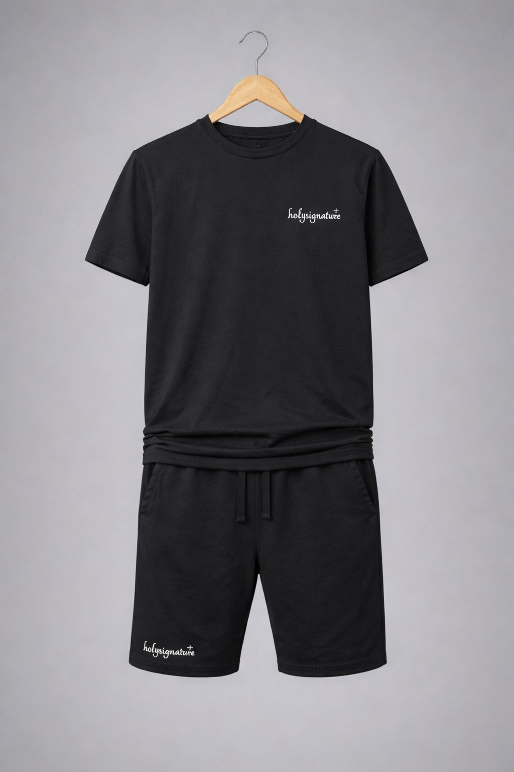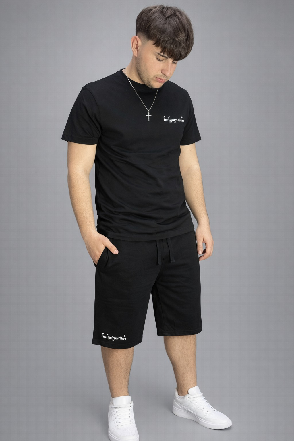 Acest compleu negru unisex este alegerea ideală pentru un look modern, curat și coerent. Setul este format din tricou și pantaloni scurți, concepute pentru a oferi confort maxim și un stil effortless, potrivit atât pentru purtare zilnică, cât și pentru ținute streetwear.