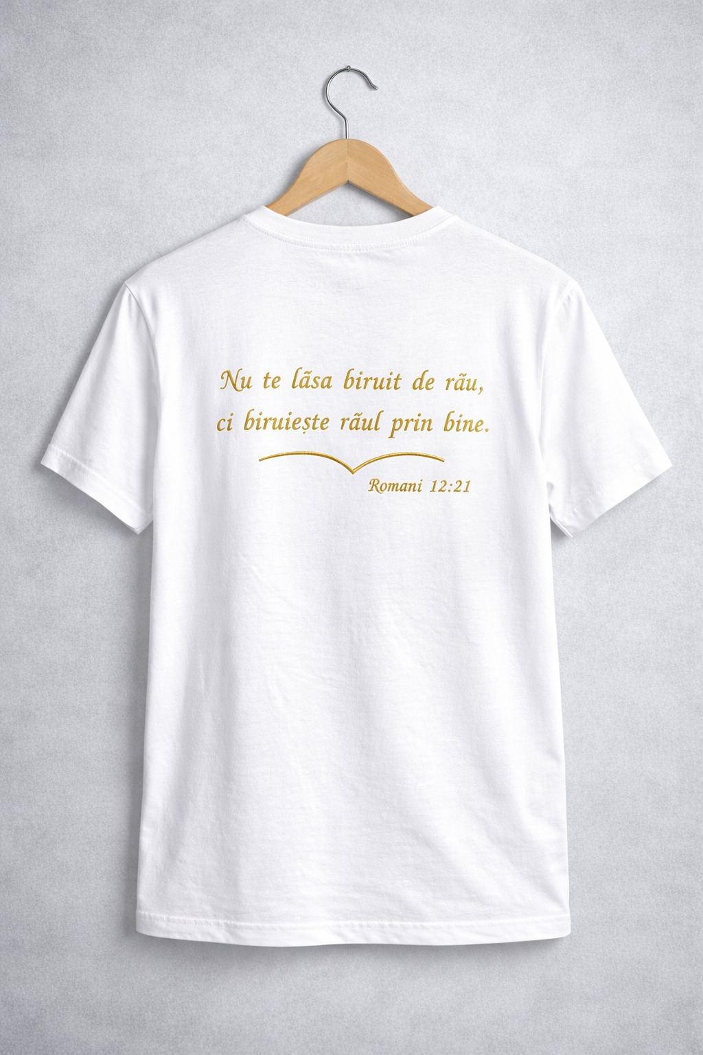 Acest tricou unisex, disponibil în variantele alb și negru, este construit pe un design minimalist, dar cu un mesaj puternic. Fie că alegi varianta albă pentru un look curat și fresh sau varianta neagră pentru un stil elegant și versatil, piesa se integrează ușor în orice outfit.